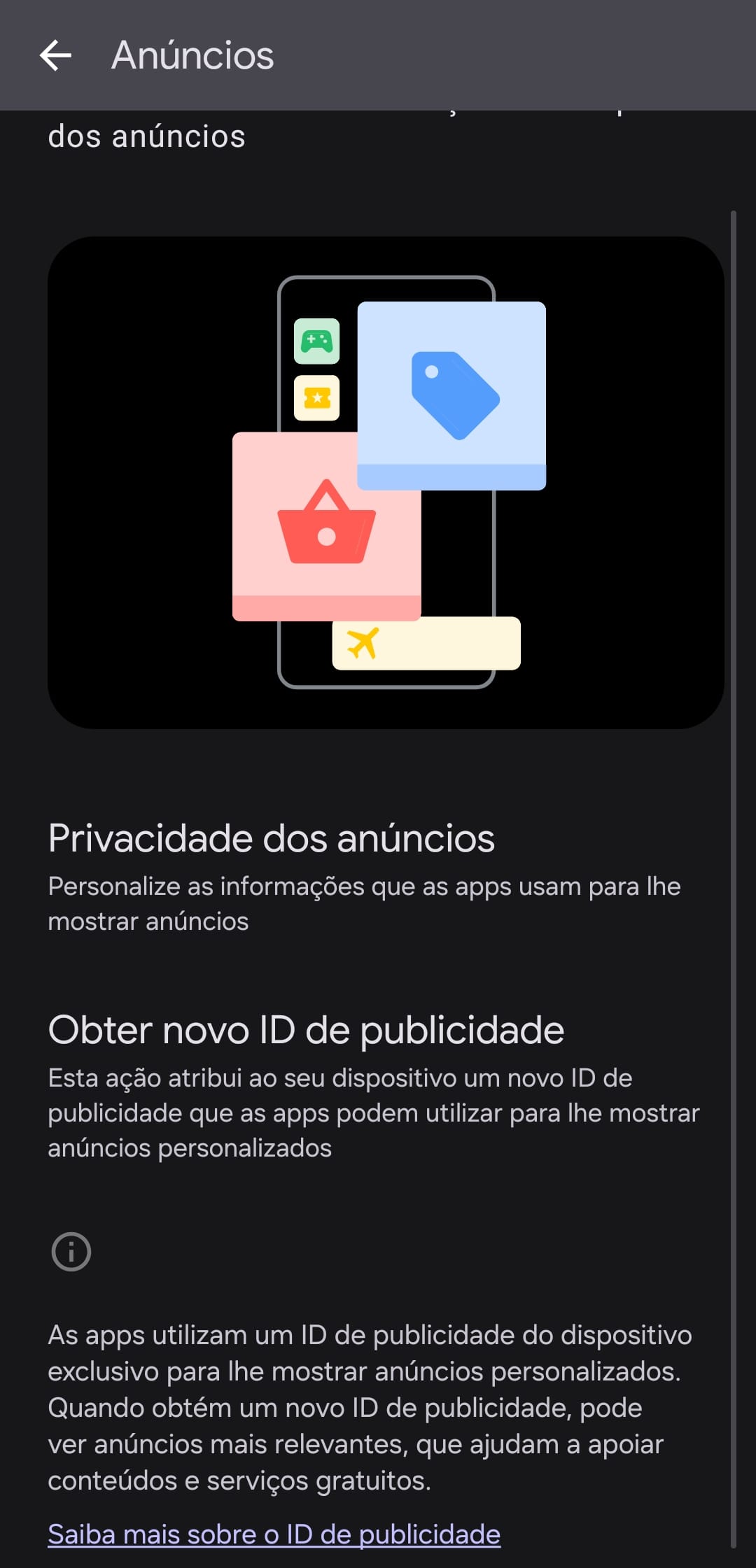 O teu dispositivo tem um “Advertising ID”, usado para rastrear a tua atividade para publicidade personalizada. Nas definições, podes resetar ou apagar por completo este identificador para reduzir o rastreio entre as aplicações.