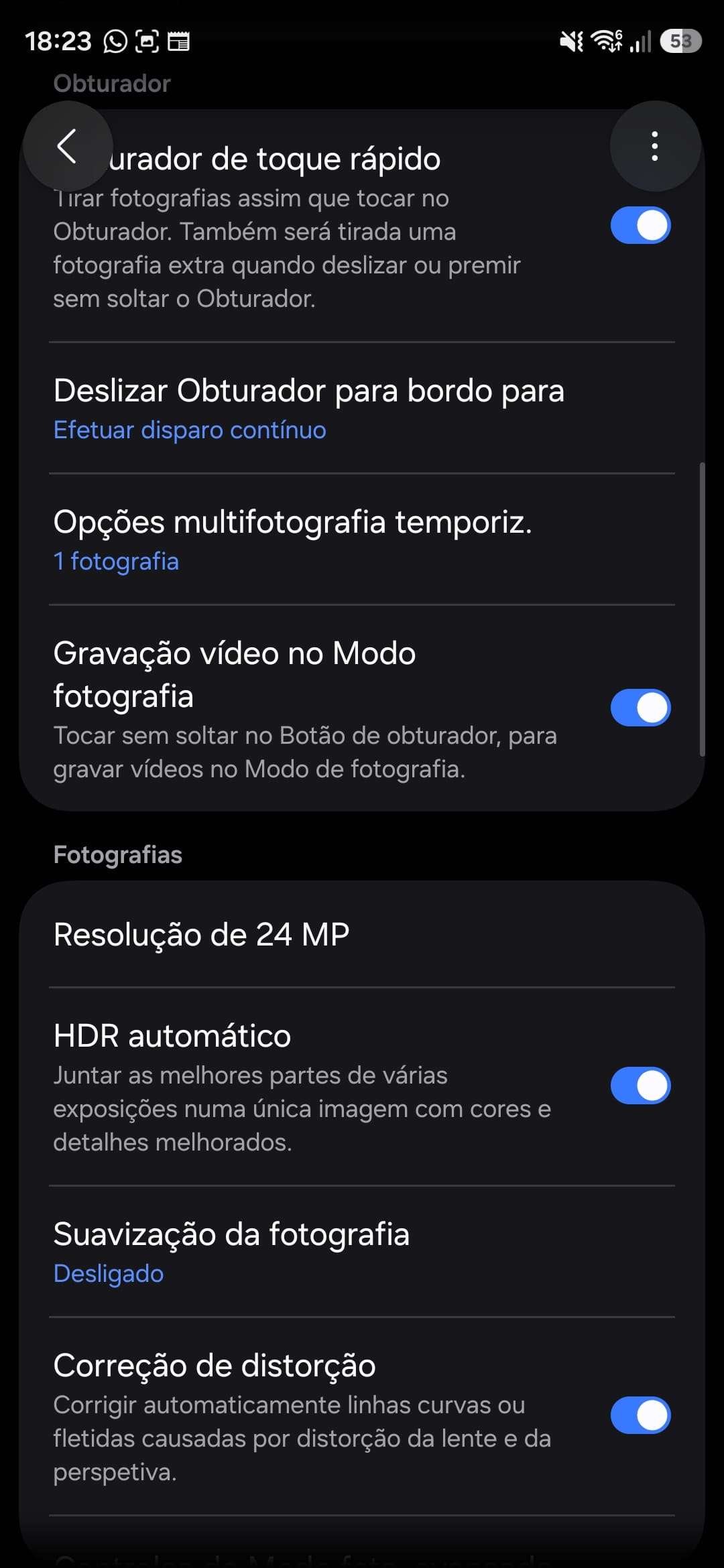 - O suporte a 24MP é também possível na lente ultra-grande angular e desde que não seja de noite.
