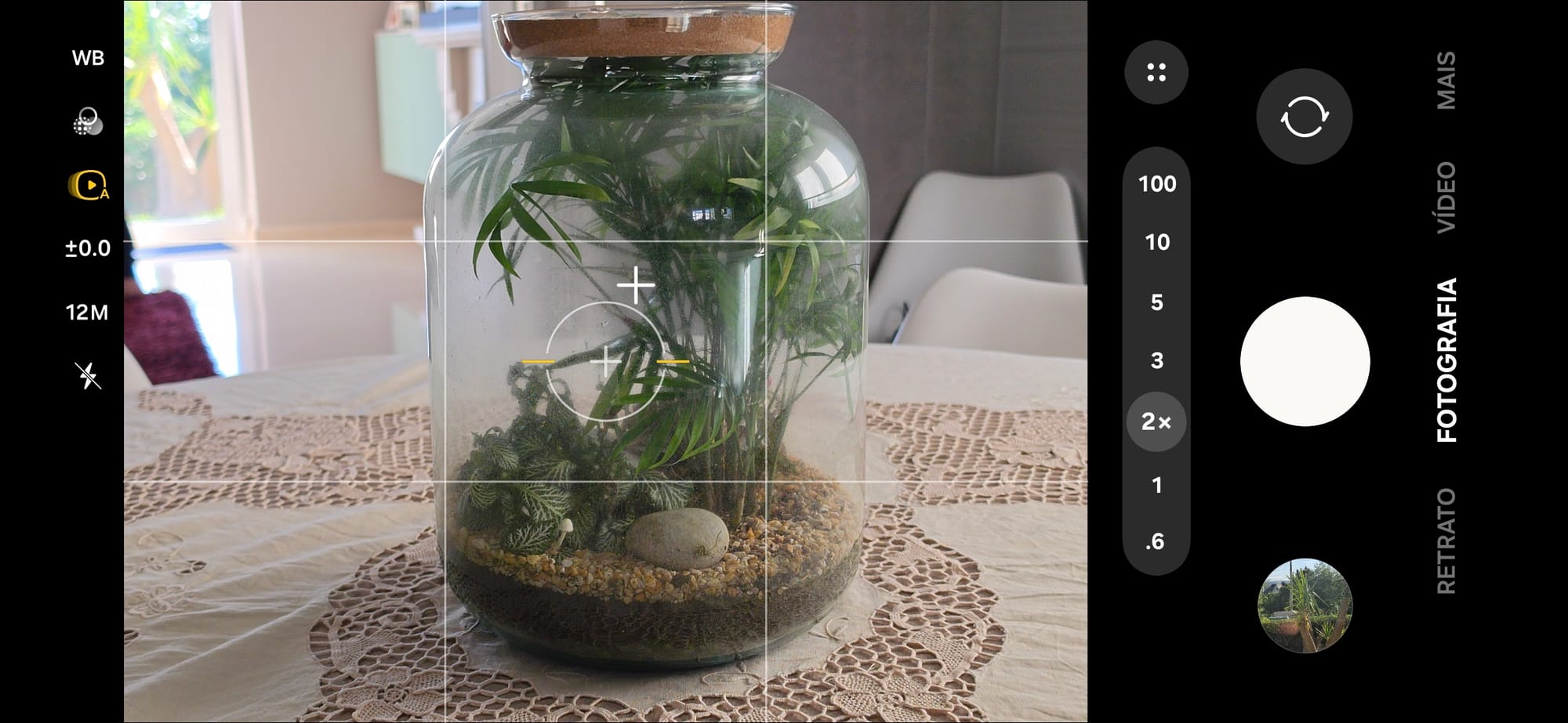- É possível capturar a 24MP com o melhorado sensor de 5x e isso acontece entre o 5 a 9,9 no zoom, o que representa uma grande capacidade do equipamento em entregar o melhor dos dois mundos num formato maior que o de 12MP.