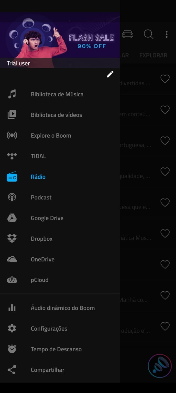 Outra característica interessante da Boom para Android é a sua capacidade de integração com diversas plataformas de streaming musical, como por exemplo o Tidal. A par disso, caso possuas uma biblioteca de ficheiros musicais nos formatos mais populares, vais conseguir reproduzi-la através da interface da Boom. Isto é válido quer possuas as músicas guardadas no teu smartphone, quer estejam no Google Drive, Dropbox, OneDrive ou até no pCloud. São suportadas ainda diversas estações de rádio e também podcasts.