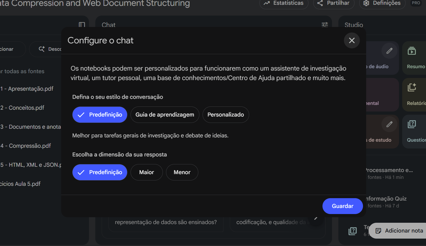 Além disso, oferece funcionalidades exclusivas, como a partilha de NotebooksLM, acesso a estatísticas avançadas e uma capacidade significativamente superior na geração de resumos, áudio e vídeo até cinco vezes mais do que na versão gratuita.