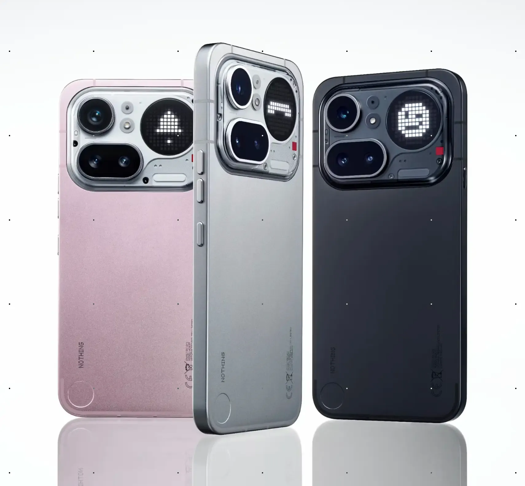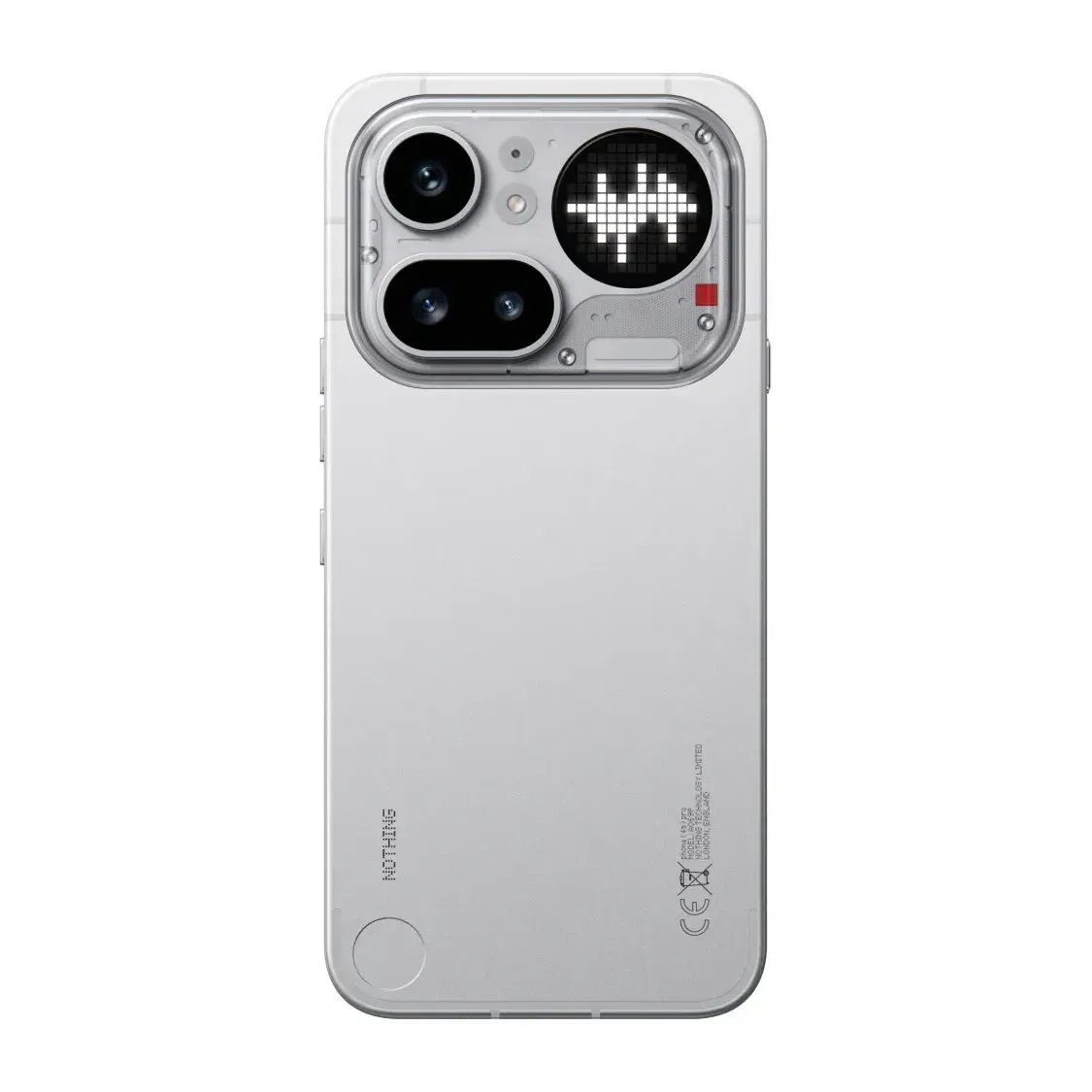Por sua vez, o Nothing Phone (4a) Pro segue um caminho completamente diferente. É o primeiro modelo da marca com construção em metal unibody em alumínio, sem a tradicional traseira transparente que caracterizou os modelos anteriores, embora o Glyph Matrix, composto por 137 mini-LEDs individualmente controláveis, continue a ser o elemento de identidade visual mais icónico. Com 7,95 mm de espessura e 210 gramas, é ligeiramente mais pesado e espesso, mas mantém o IP68 e está protegido pelo Gorilla Glass 7i. Disponível em Preto, Rosa e Prateado, é uma escolha mais vanguardista.