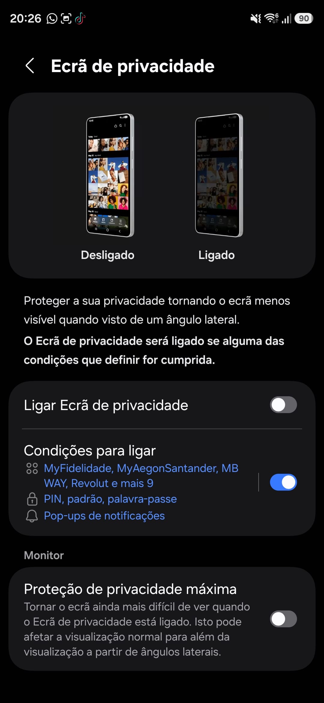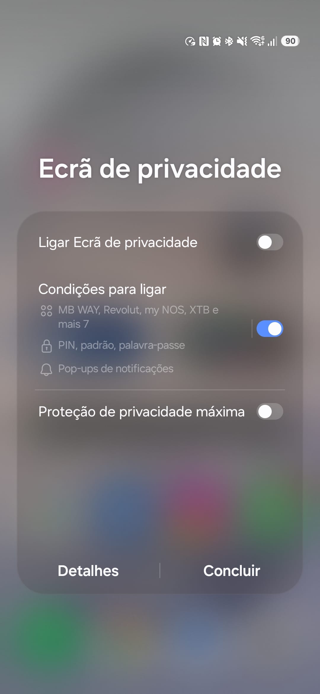 Ainda possível, e útil, é que podemos ativar usando a aplicação Modos & Rotinas, e aí criar momentos personalizáveis ao longo do dia, quer por base em horas ou localização, que despoleta a ativação do Ecrã de Privacidade.