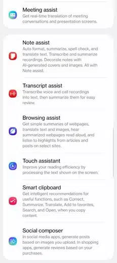 Por último, temos a suite Galaxy AI que ganha quatro novas funcionalidades, uma delas vinda da versão chinesa da One UI, pelo Sammyguru. Com a One UI 8.5 teremos novas ferramentas para melhorar a produtividade, acessibilidade e criatividade. A função Meeting Assist promete traduções em tempo real de conversas e até dos ecrãs de apresentação, ideal para quem trabalha em ambientes multilíngues. Já o Touch Assistant irá facilitar a leitura, reformatando texto ou apresentando-o de modo mais claro. O Smart Clipboard vai além de guardar o que se copia: vai sugerir ações inteligentes como correção gramatical, tradução ou resumo automático, dando mais vida ao que é, atualmente, um painel estático. Por fim, o Social Composer usará IA generativa para ajudar a criar publicações com base em imagens ou automatizar avaliações de produtos, especialmente útil em aplicações de redes sociais e comércio online.