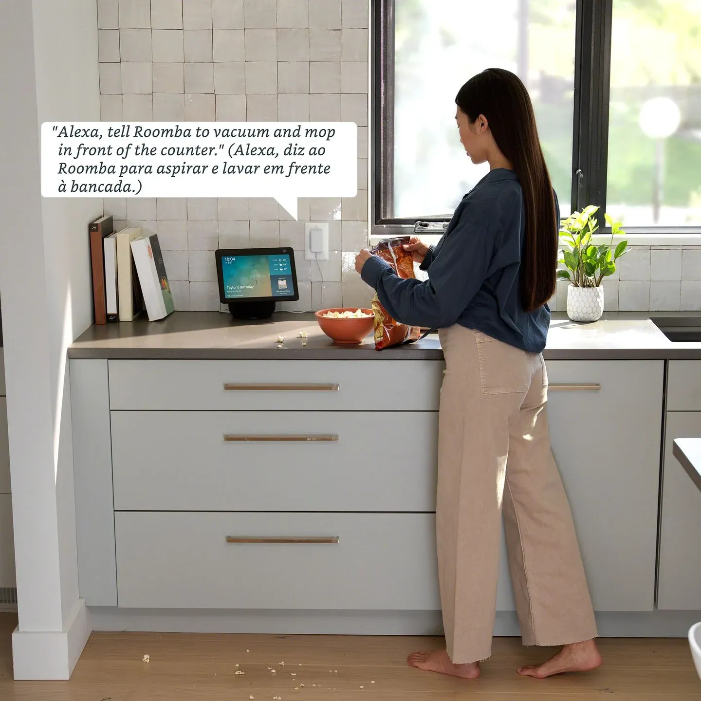 O controlo é feito via Roomba Home App ou por comandos de voz através da Google Assistant, ou outros assistentes - por exemplo, Alexa ou Siri. É possível agendar limpezas por divisão, tipo de piso ou mesmo por tipo de sujidade, além de definir zonas proibidas e limpezas pontuais — tudo sem levantar um dedo.
