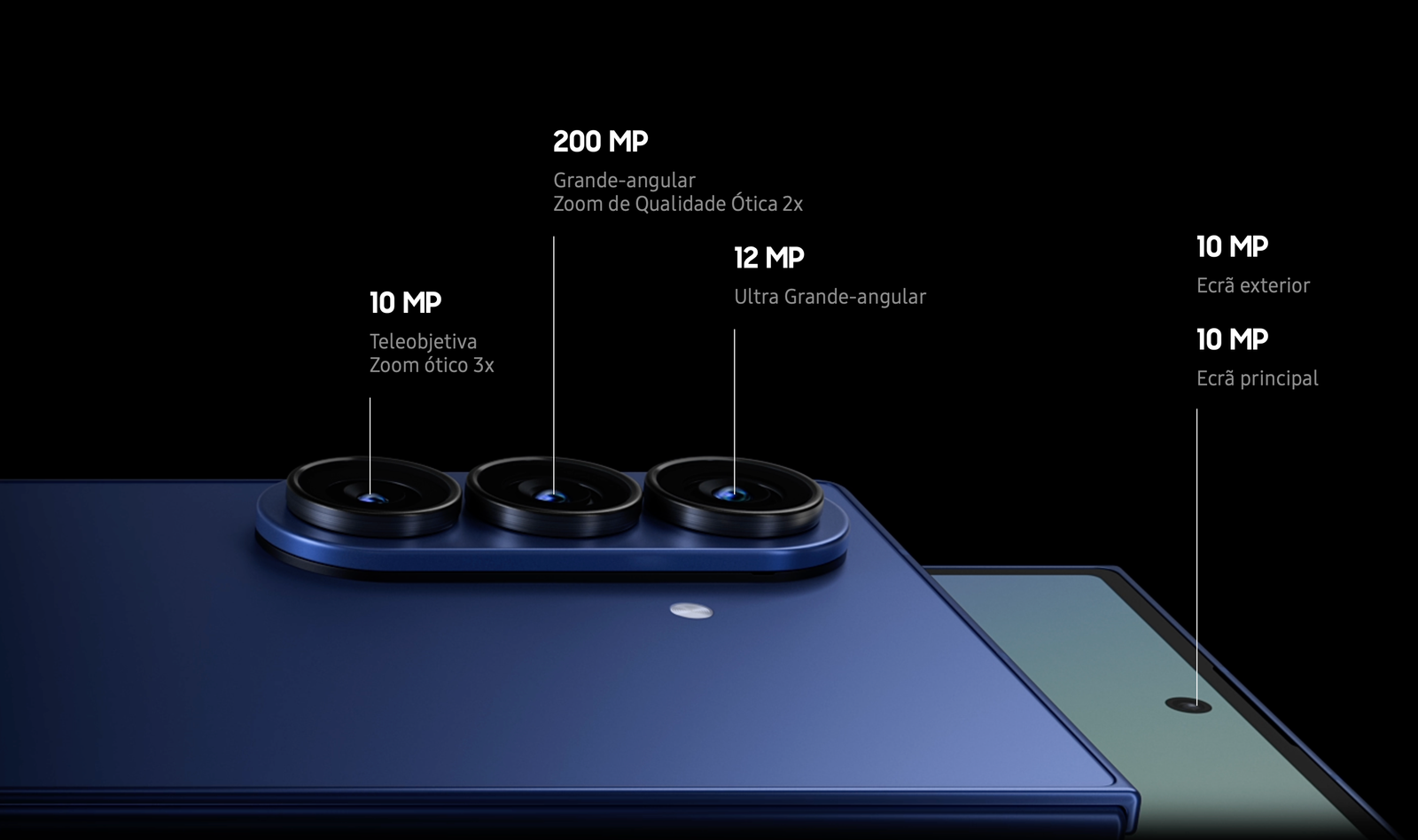 O sistema de câmaras do Galaxy Z Fold7 representa o expoente máximo da inovação fotográfica da Samsung. Na traseira está uma lente principal de 200 MP, com tecnologia OIS DualPixel, responsável pela captação de imagens com uma nitidez e luminosidade impressionantes. A lente é capaz de adaptar-se às mais diversas condições de luz graças à tecnologia Pixel Binning, que combina píxeis para oferecer resultados ultra detalhados de dia e fotos mais luminosas à noite.