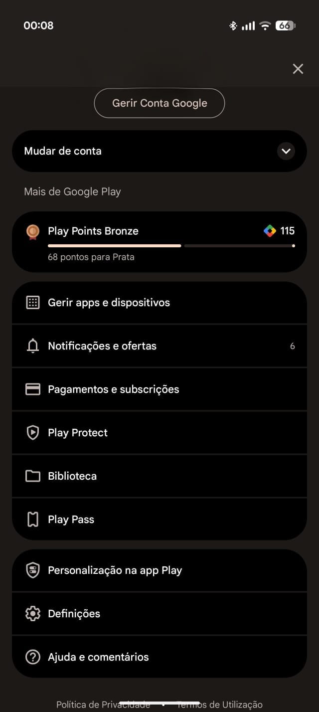 Para aqueles que possuem um dispositivo Android, seja ele smartphone ou tablet, basta abrir a aplicação da Play Store e clicar no ícone com a nossa foto de perfil, localizado no canto superior esquerdo do ecrã.
