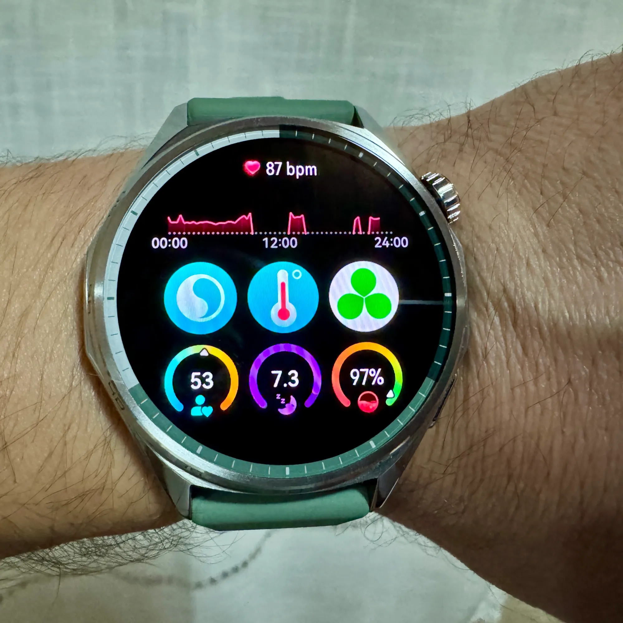 Com sensores de frequência cardíaca, SpO₂, monitorização do sono, stress e até temperatura da pele, este relógio sabe praticamente tudo sobre ti.