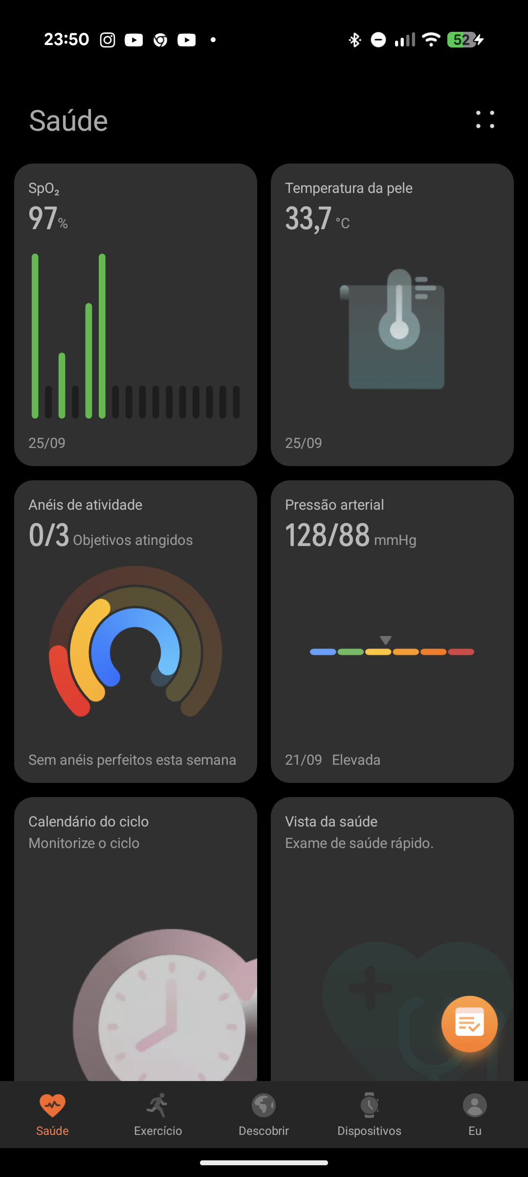 - Bem-estar emocional: Detecta variações nos níveis de stress, oferecendo recomendações para relaxamento.