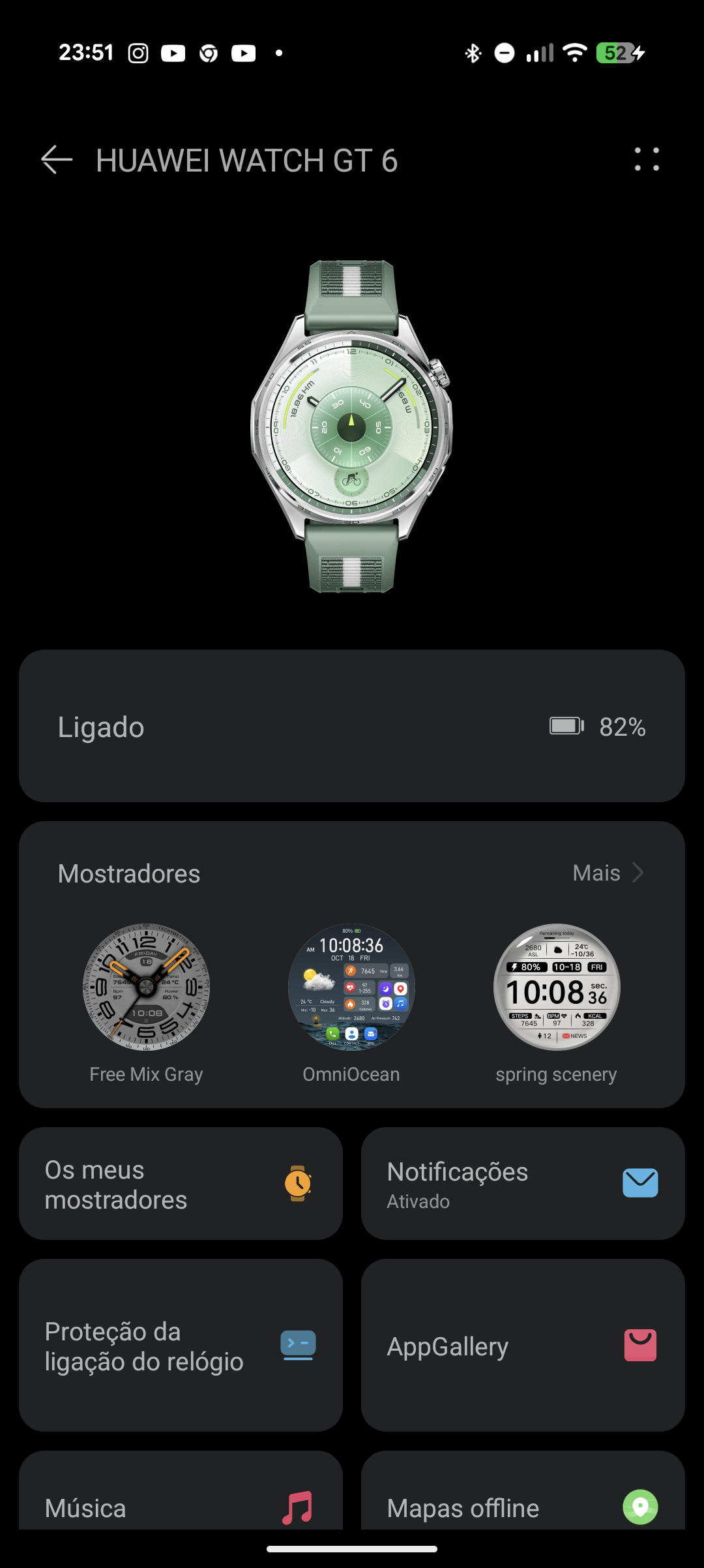 Interface de utilizador do Huawei Watch GT 6.