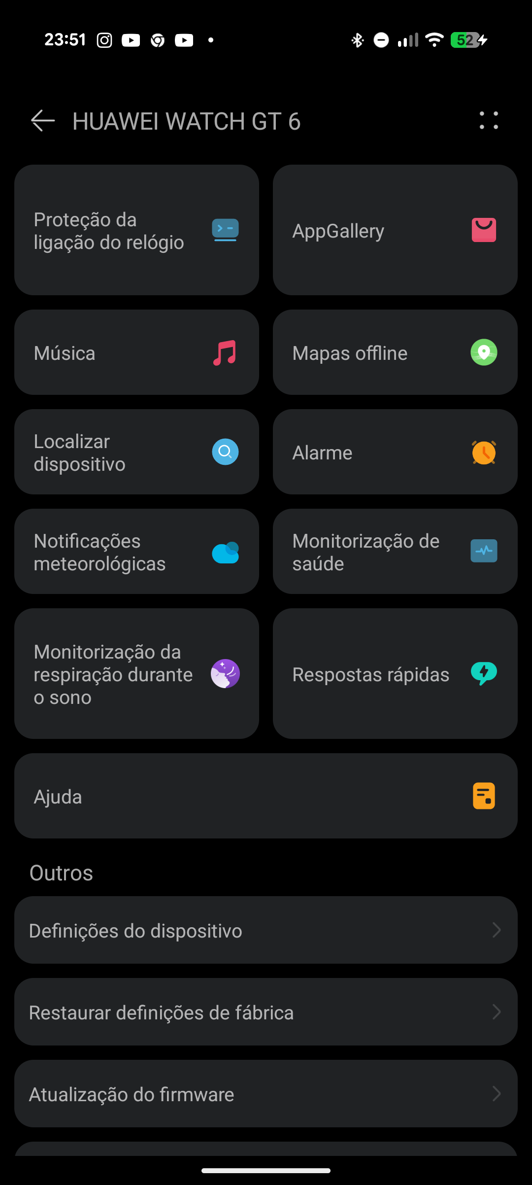 Menu de aplicações do Huawei Watch GT 6.