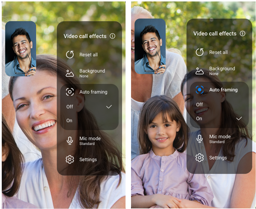 A empresa continua a pensar nas aplicações externas, melhorando nesta atualização os efeitos em vídeo durante chamada. Estes efeitos foram adicionados e melhorados nas aplicações BlueJeans, Duo, Google Meet, KakaoTalk, Knox Meeting, Messenger (Meta), Microsoft Teams, WhatsApp, Webex Meetings e Zoom. Acresce ainda um modo de auto framming e disponível durante as videochamadas.