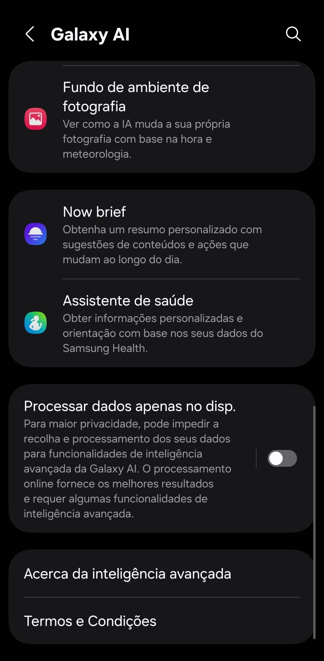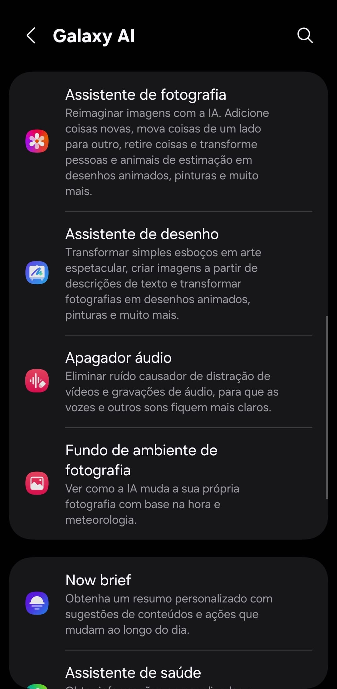Por fim, encontramos as funcionalidades que, para muitos, são as mais duvidosas: o Now Brief e Assistente de Saúde. Sendo as funcionalidades mais recentes, a utilidade das mesmas é, para muitos, discutida, visto que ainda existe um leque de personalização que falta. Mas, em suma, o Now Brief permite, com base nos hábitos de utilizadores, apresentar resumos e sugestões ao longo do dia com base em eventos, fotografias, fatores de saúde ou playlists.