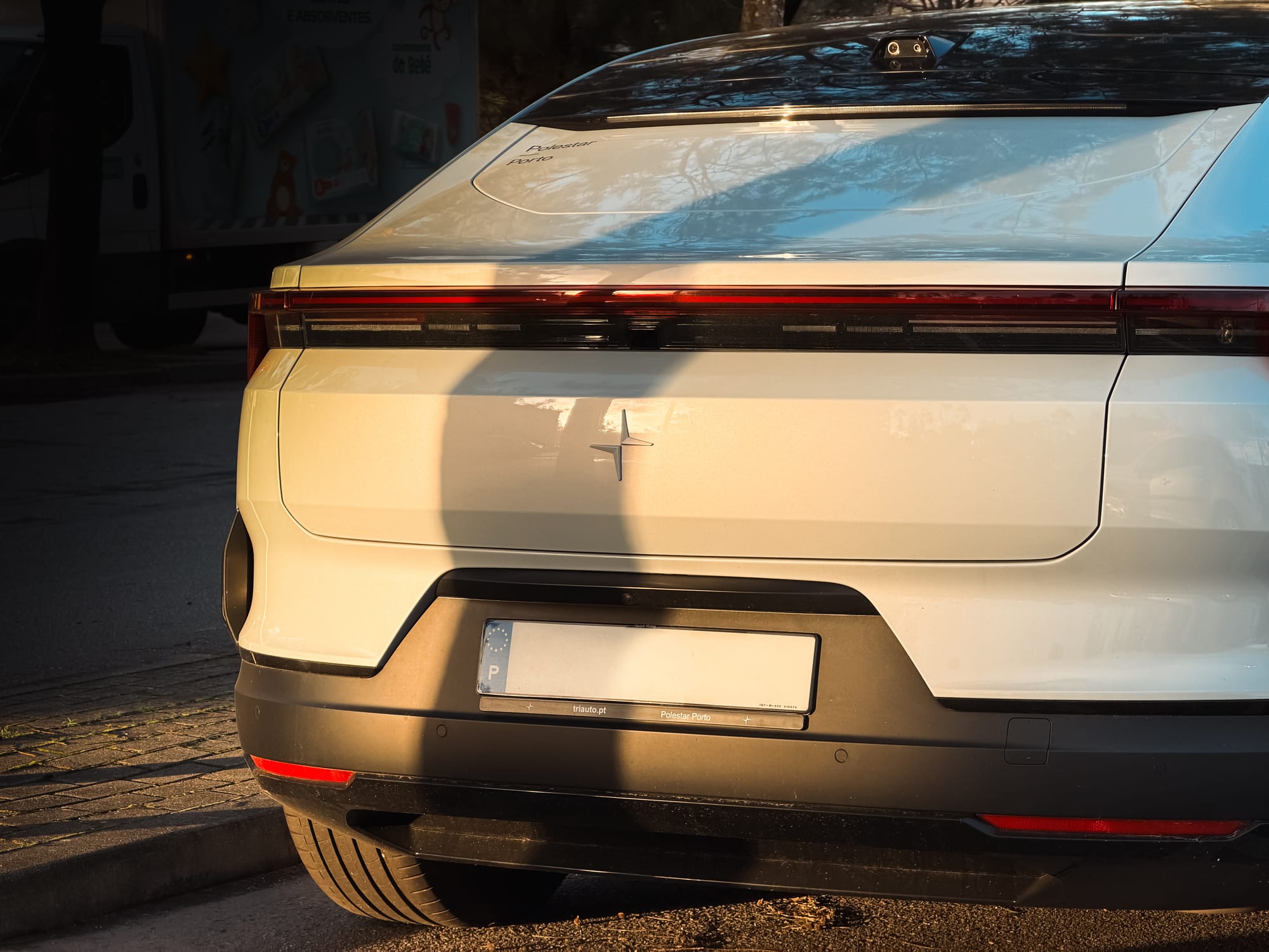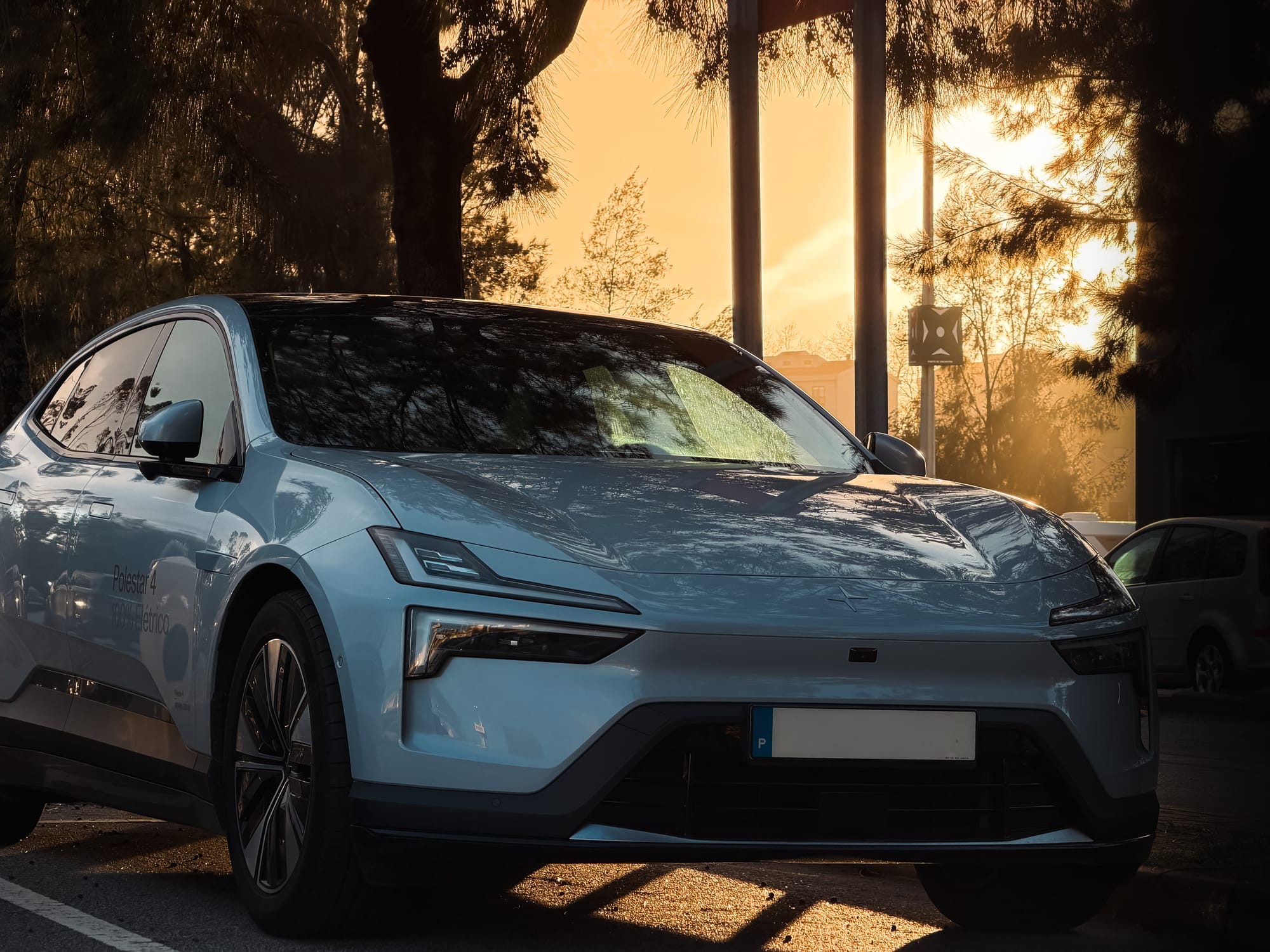 À primeira vista, o Polestar 4 impõe-se pela sua silhueta coupé e linhas limpas. A ausência do vidro traseiro tradicional é, sem dúvida, o elemento mais disruptivo, substituído por uma câmara de alta definição que projeta a imagem no retrovisor digital. Longe de ser apenas um truque estético, esta solução revelou-se prática e eficaz, oferecendo uma visibilidade clara em diferentes condições de luz.
