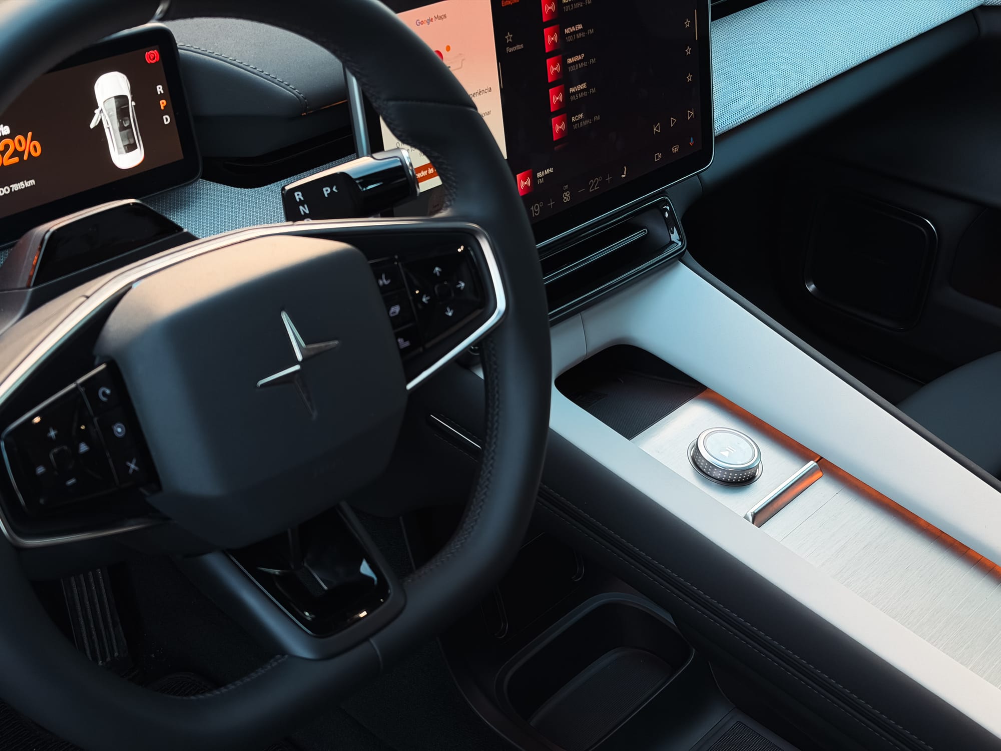 A tecnologia é um dos pilares do Polestar 4, mas o que realmente impressiona é a forma como está integrada. O sistema de infotainment baseado em Google integrado funciona de forma fluida, com navegação precisa, comandos de voz eficazes e acesso direto a aplicações essenciais.