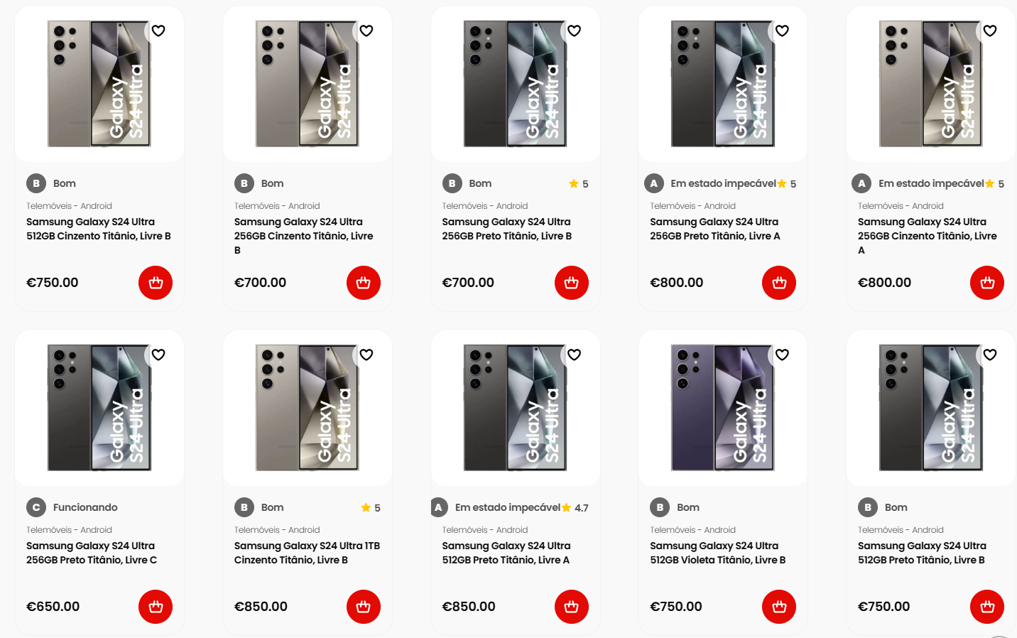 A empresa, e o próprio mercado de usados e recondicionados, consegue agora colocar o S24 Ultra a preços que o tornam numa compra difícil de resistir. A versão de 256 GB, por exemplo, pode ser encontrada a 800 € na categoria A, 700 € na Livre B e até 650 € na Livre C. Isto significa que a poupança face ao preço de lançamento varia entre 699 € e 849 €, dependendo da categoria — praticamente metade do valor original.