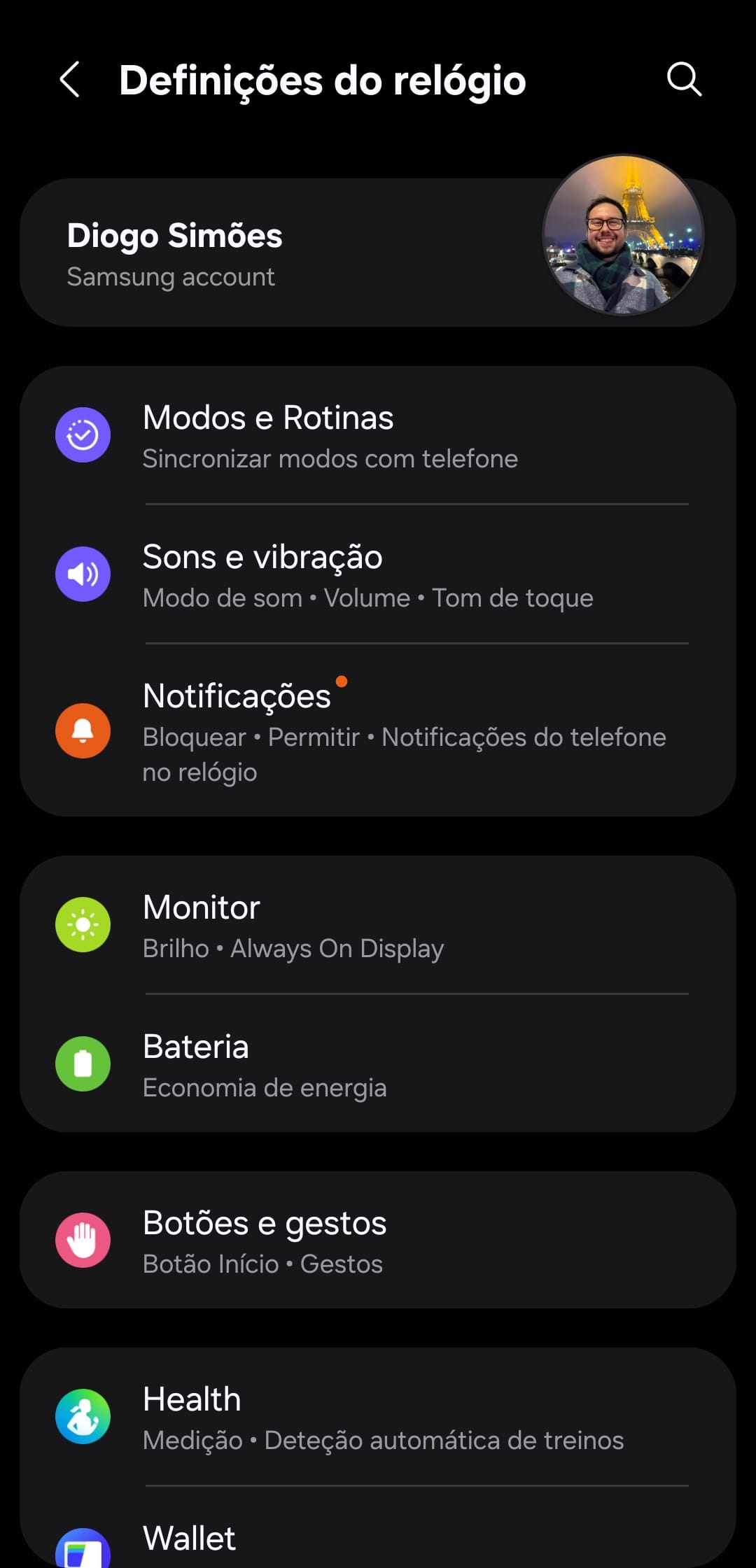 O Galaxy Watch 8 Classic estreia a nova One UI 8 Watch, que traz uma autêntica repaginada à interface. Não só a aproxima da experiência visual que encontramos nos telemóveis da marca, como facilita a navegação num ecrã mais pequeno. Destaco a Now Bar, que surge no ecrã principal e é particularmente útil quando existem várias tarefas em execução, bem como o acesso aos diferentes widgets que podem assumir um formato mais compacto, semelhante a um comprimido, ou uma versão mais alongada. Aliando este design à navegação através da coroa, encontrar o que precisamos torna-se não só fácil como extremamente rápido.