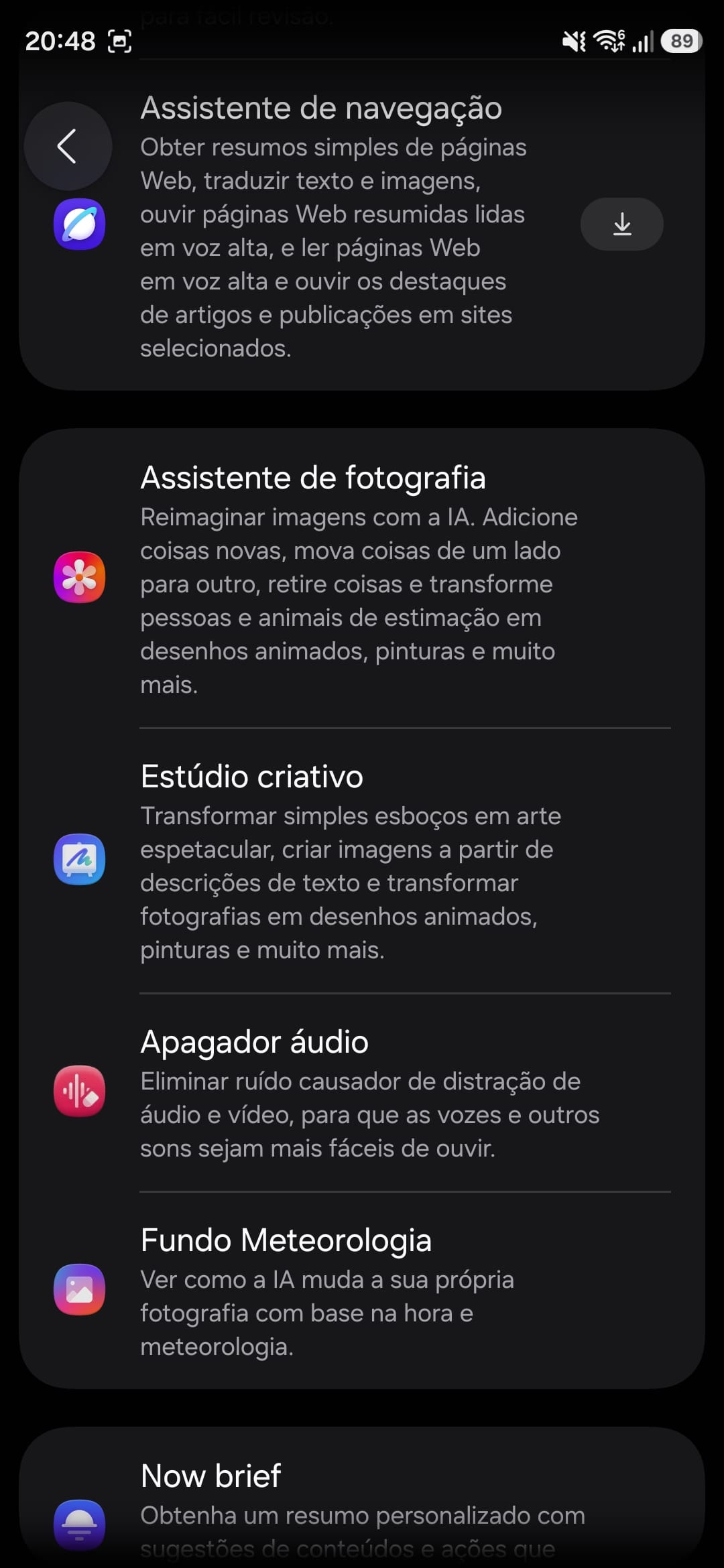 A Galaxy AI junta-se naturalmente à festa: quer seja em pesquisas naturais nas definições, na nova Bixby com Perplexity, ou no Gemini, a empresa continua a democratizar e a dar escolha ao consumidor. Quer seja através de automatismos no sistema, quer por via da edição profunda de imagem, vídeo e som, o leque de funcionalidades está cada vez mais maduro. Sim, o Now Brief é agora mais útil e consegue lembrar-me de eventos, de dados de saúde e até de onde estacionei.
