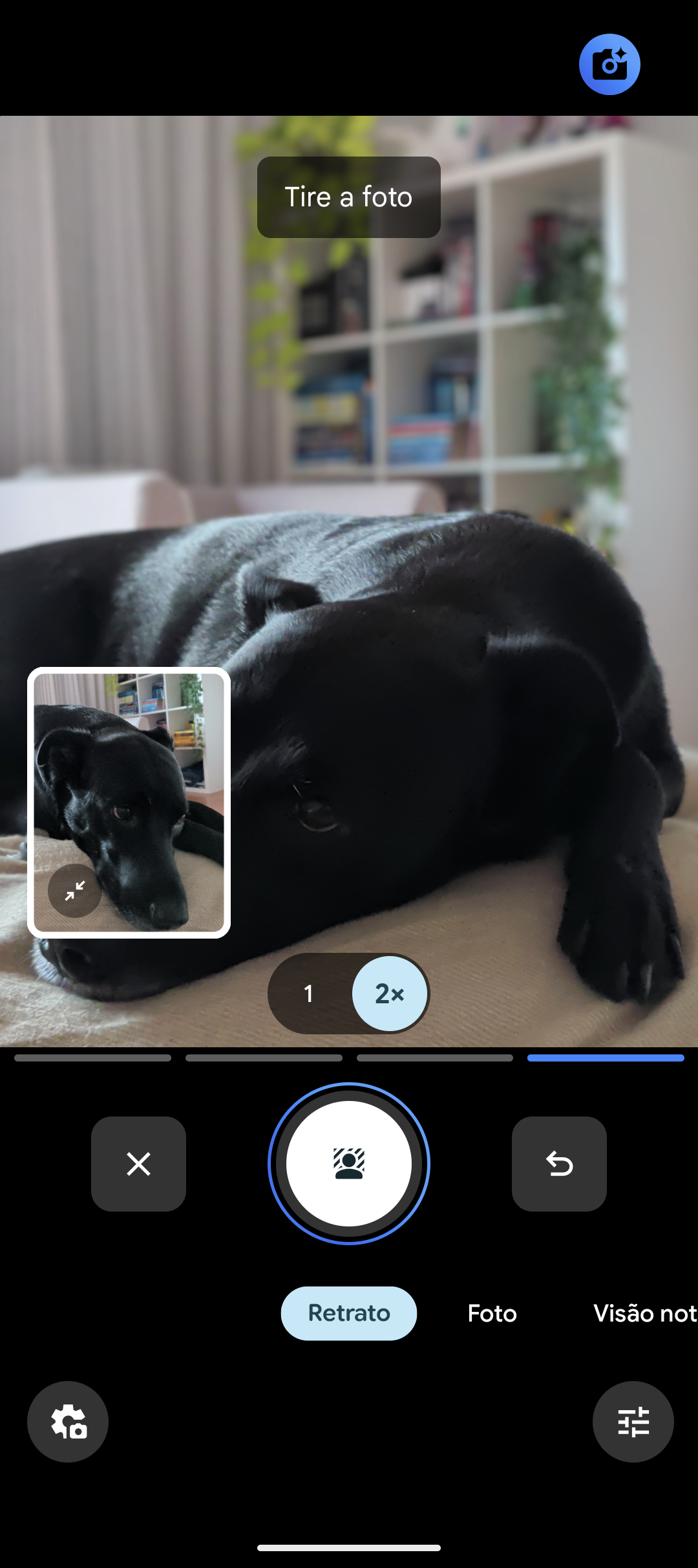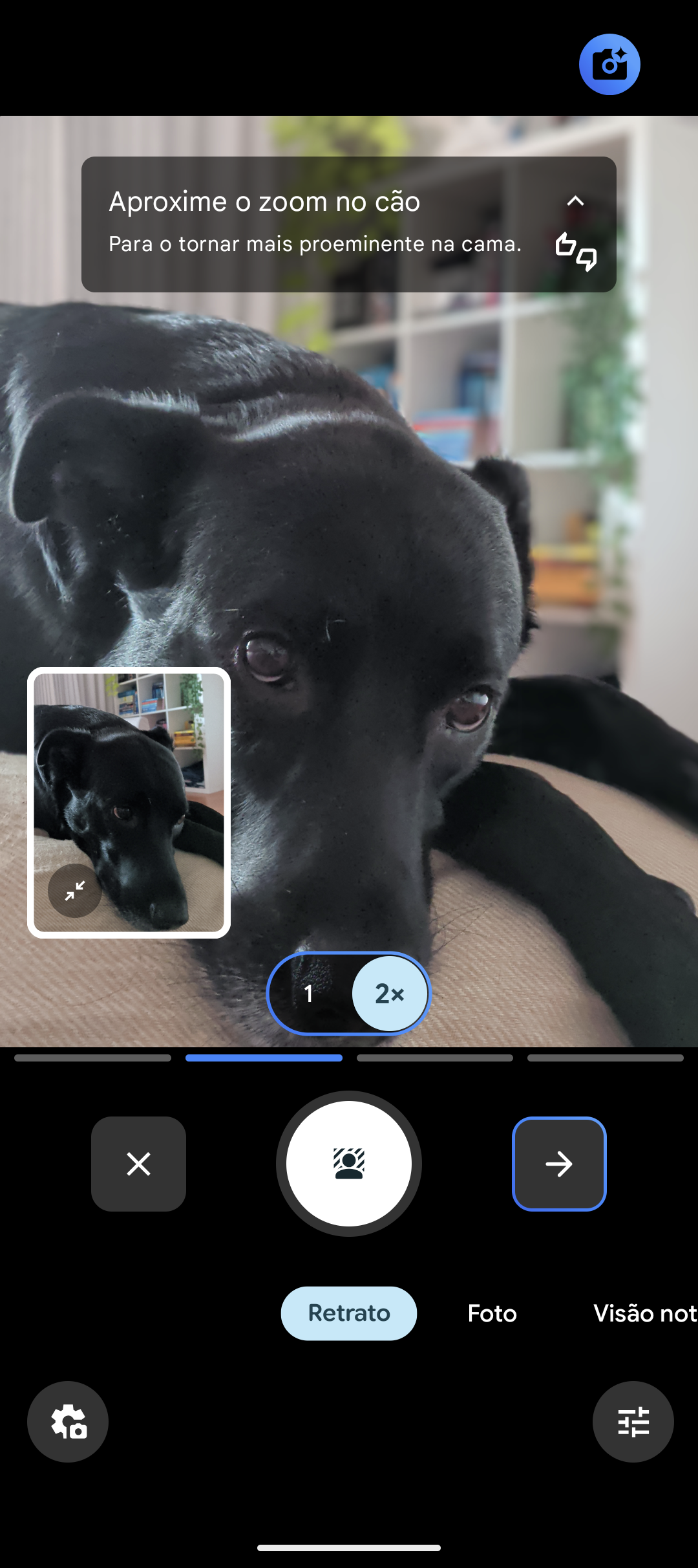 O assistente prepara então os passos que são indicados ao utilizador por meio de destaques na interface da câmara, especialmente útil quando não sabemos onde estão, ou como usar, certos modos. Aqui este pediu-me para entrar no modo Retrato para depois, ao usar zoom, enquadrar a imagem.